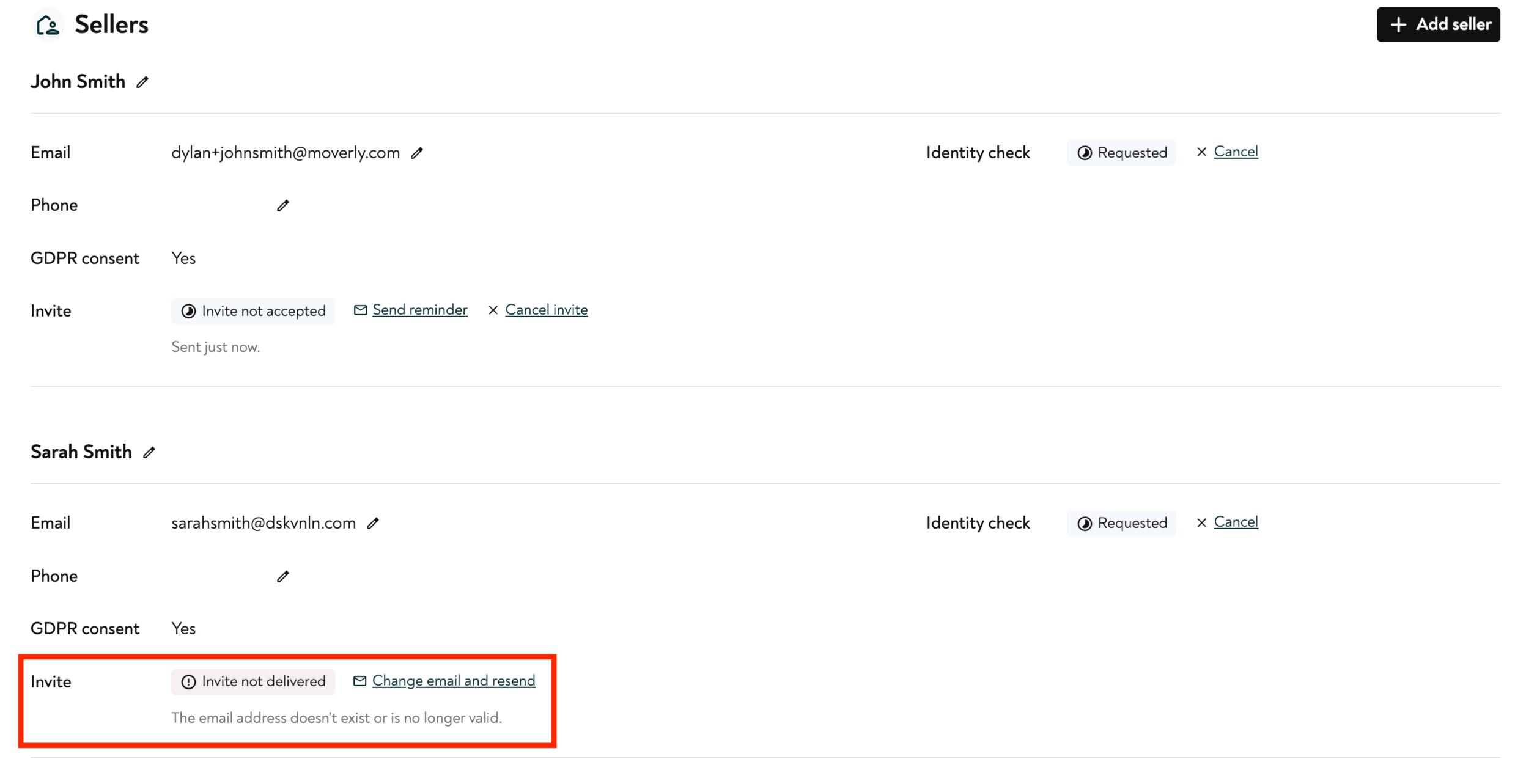 Agents can confirm whether an email invite has been successfully sent by referring to the Sellers, Buyers, Landlords, or Tenants tabs.